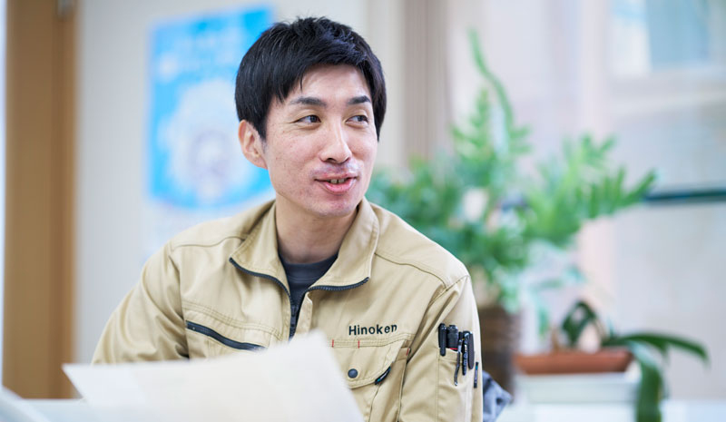 | ひとこと | 入社前、自宅をヒノケンでリフォームしたのですが、完成形を見た時に感動がこみ上げてきたのを覚えています。今はヒノケンの一員として、同じ感動をお客様にお伝えしたいという思いで設計に取り組んでいます。 |